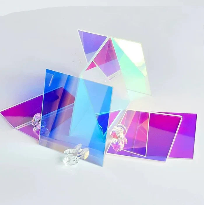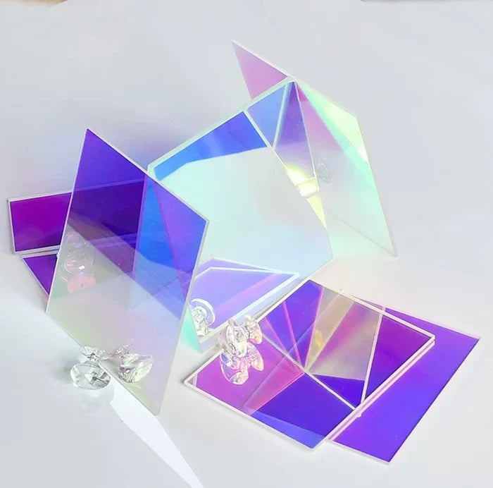 The iridescent acrylic sheets refract a spectrum of brilliant colors when exposed to light, creating a mesmerizing rainbow-like effect in any space. Whether under natural or artificial light, the acrylic sheet displays unpredictable, dynamic color changes. As the angle and light source shift, the refracted light resembles a kaleidoscope, adding a touch of artistic atmosphere to your projects or interiors.