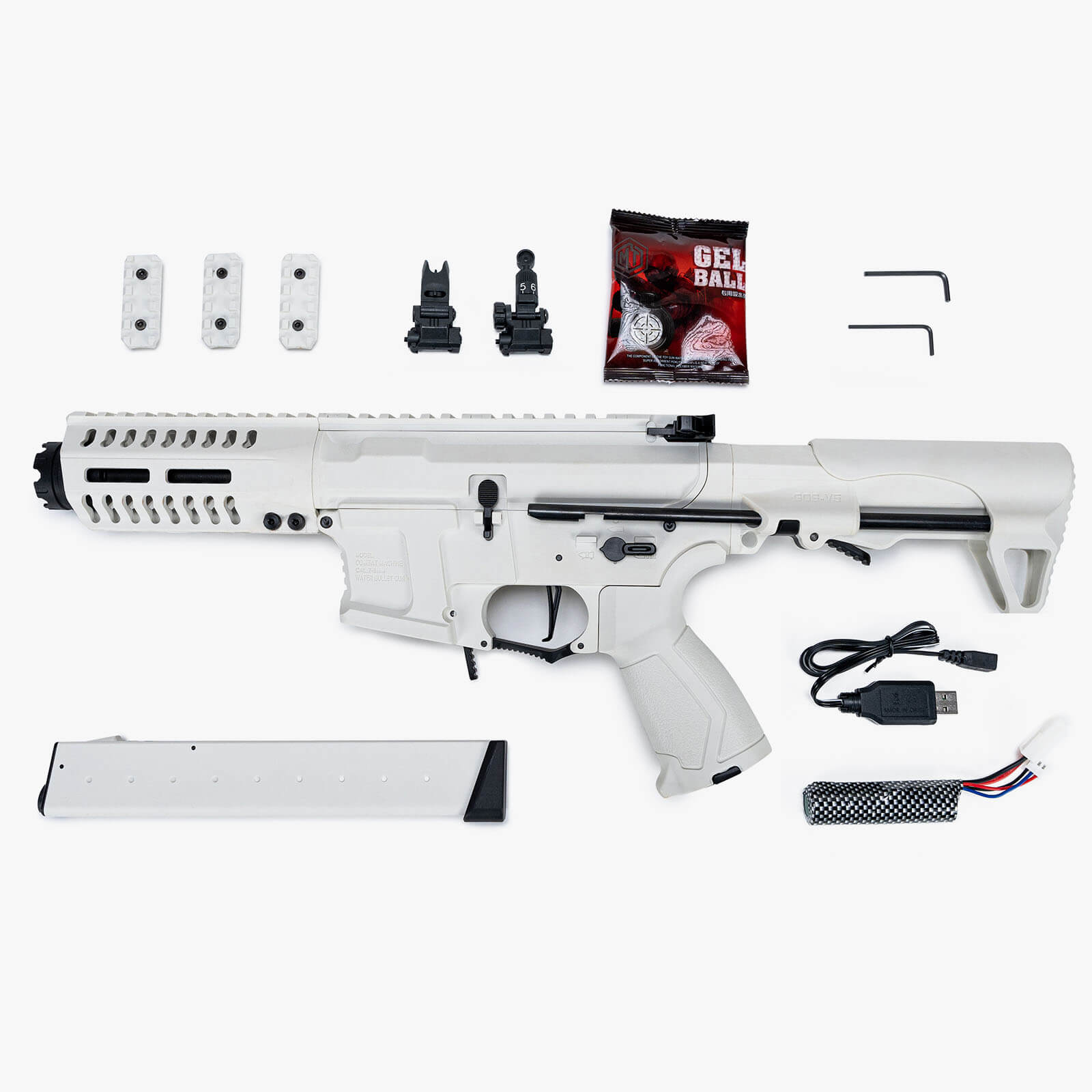 Not only is it a beast on the battlefield, but it's also a sleek and stylish addition to your collection. With its black and white color scheme, it's easy to spot and looks seriously badass. So why settle for a boring old blaster when you can upgrade to the ARP9 Gel Blaster? Get ready to dominate your opponents and have a blast while doing it!