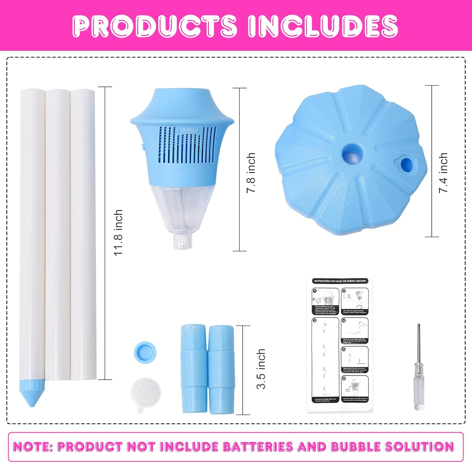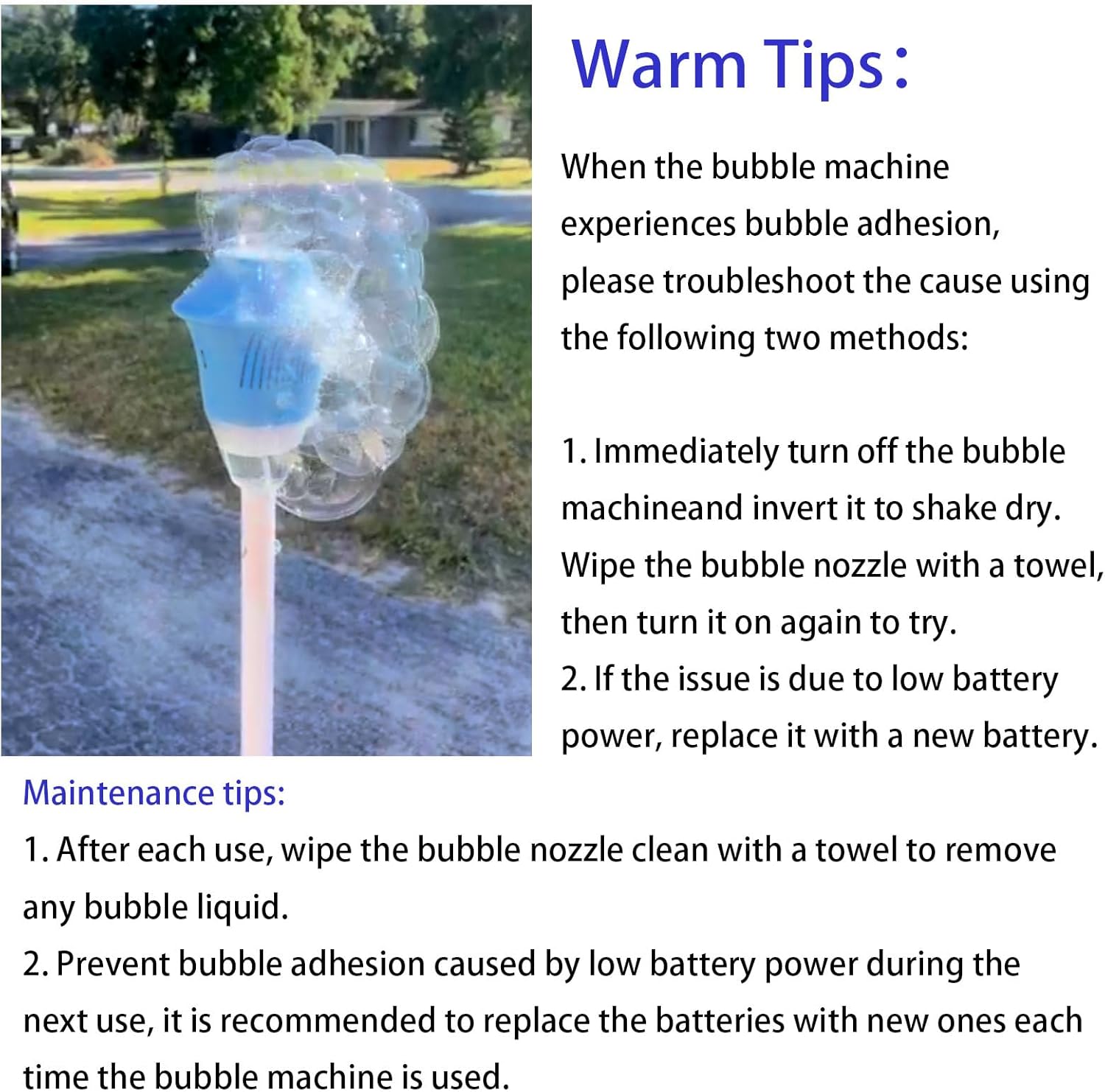 - Unimaginable atmosphere experience: imagine that at an outdoor party, wedding or celebration, this vertical bubble machine releases colorful bubbles that float into the sky with the breeze, creating a dreamy atmosphere. Compared to ordinary bubbles machine, it does not need to be placed on a table, and uses its 47-inch height advantage to blow bubbles into the sky, creating a more spectacular visual effect, making every guest attending the event feel as if they were in a fairy tale world.