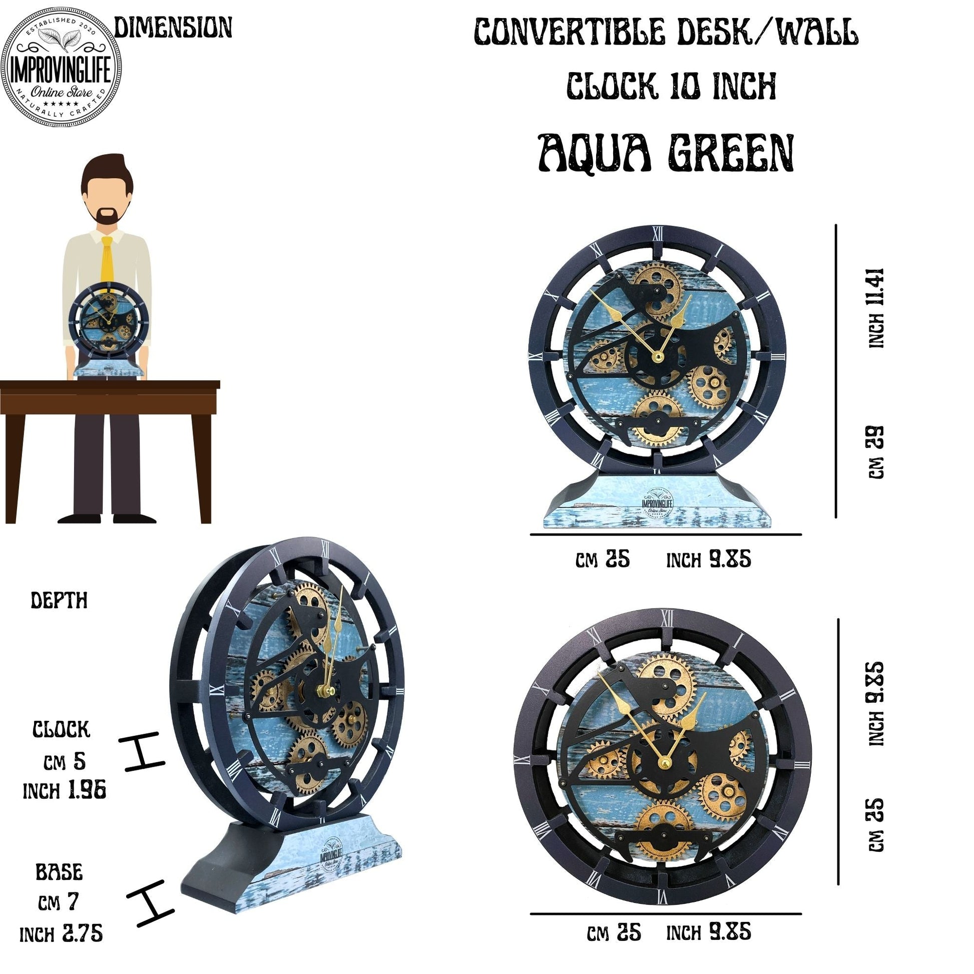 CANADA LINE DESK CLOCK ROUND (HYBRID WALL) 10 INCH AQUA GREEN
