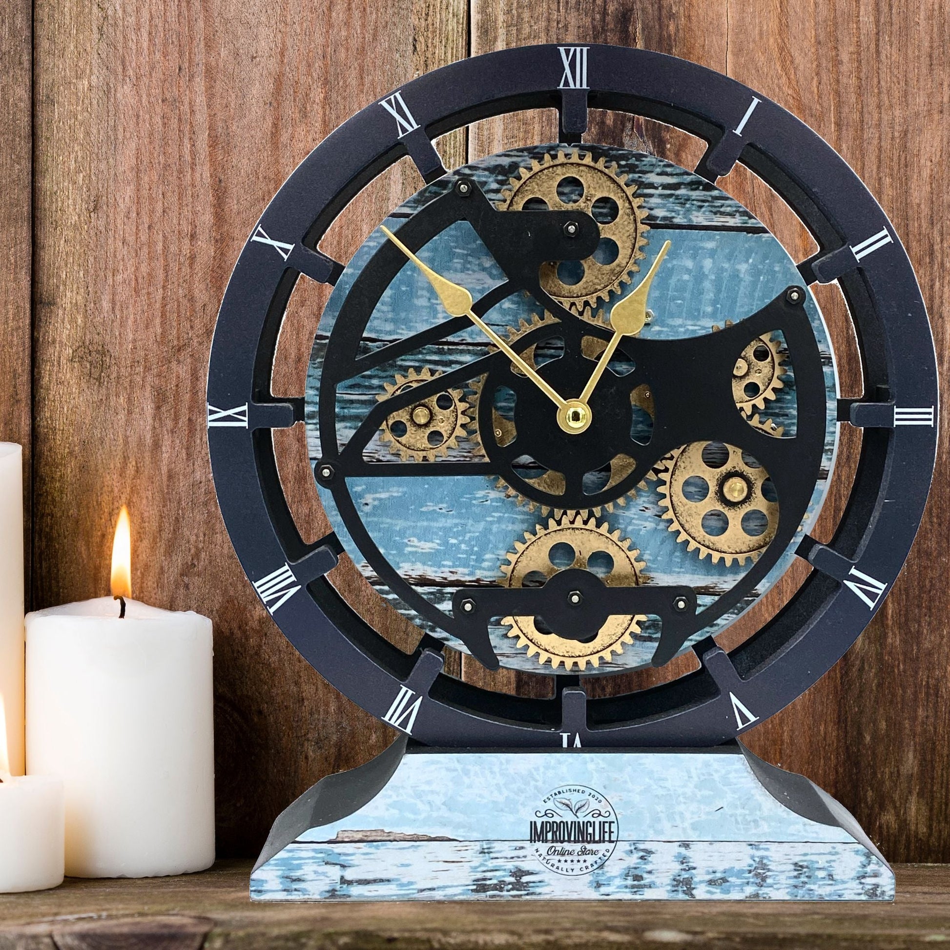 PERFECT FOR ALL ROOMS | This unique Industrial vintage Steampunk Real Moving gears clock is the perfect clock to dress up your countertop or your wall anywhere: entryway, office, living room, kitchen, bedroom, bathroom, family room, den, office, Workplace......anywhere!