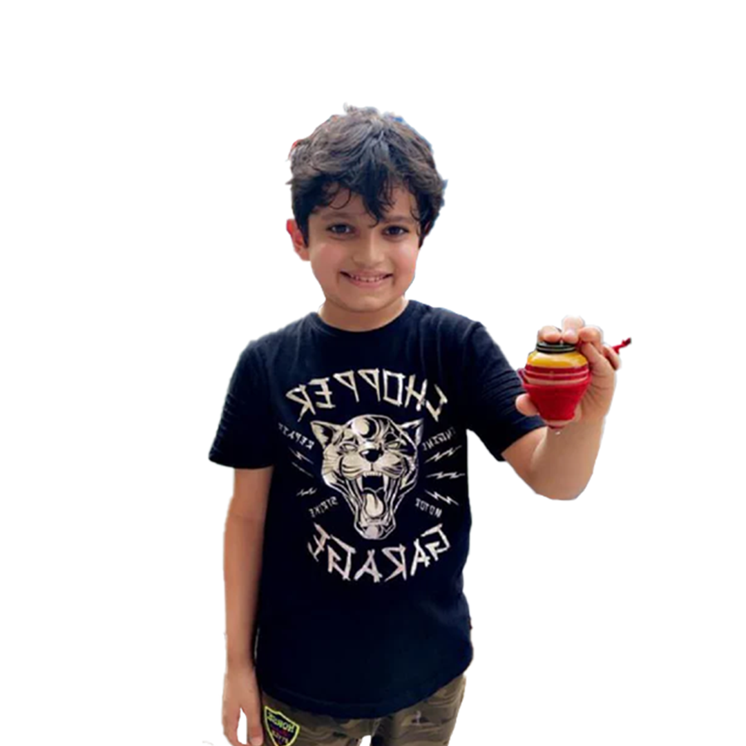 CONTENT - 1 Wooden Spinning top/Lattu, 1 Steam Toy Boat, 1 Tin Clicker, 1 Tin Spinning top, 1 handcrafted pencil & a Marbles set