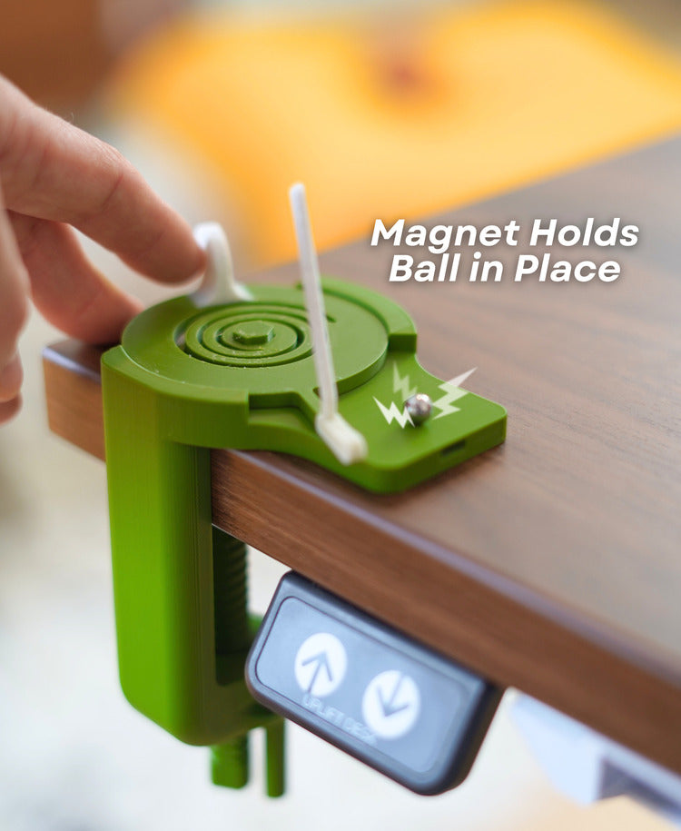 Crafted for both form and function, Desktop Golf features a sleek return system, spring-loaded swing arm, and magnetic ball stops for a smooth, satisfying play experience. It mounts securely to most desks and tables using included clamps and hardware. Best used on desks with an open edge.
