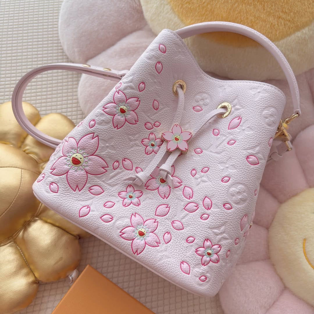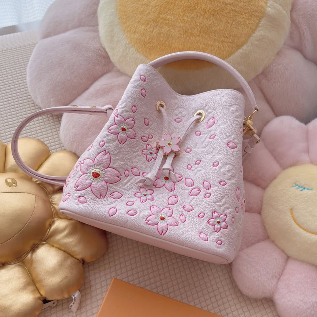 Flora Belle is where graceful charm meets luxury craftsmanship. Wrapped in a delicate blush tone and adorned with embroidered sakura blooms, this bucket bag is a poetic nod to springtime elegance. With gold-toned hardware and thoughtful floral accents, it’s perfect for those who carry beauty in both style and spirit.