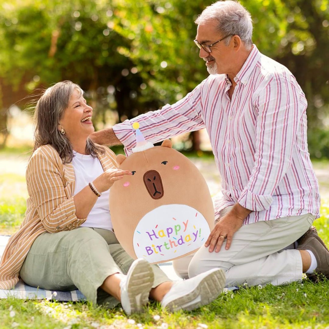 Celebrate in the most relaxed and adorable way with the Happy Birthday Capybara Plush! Known for their calm and friendly nature, this capybara comes dressed for the party with a festive birthday hat and a cute “Happy Birthday” message—making it the perfect gift for birthdays big and small.