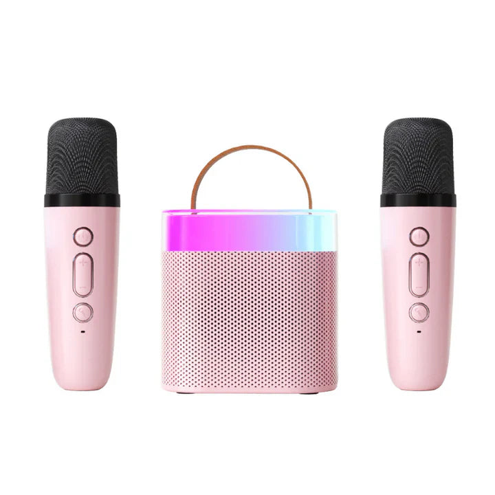 This mini karaoke machine provides endless entertainment for both kids and adults. With two wireless microphones and vibrant sound quality, it's perfect for duets, parties and family fun. Lightweight, portable and easy to connect, this karaoke machine turns any room into a stage for creative musical adventures.