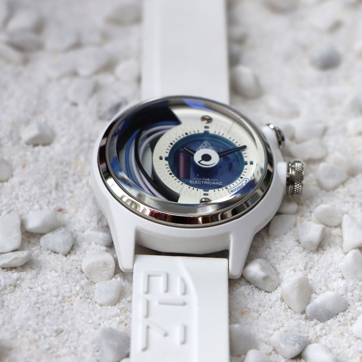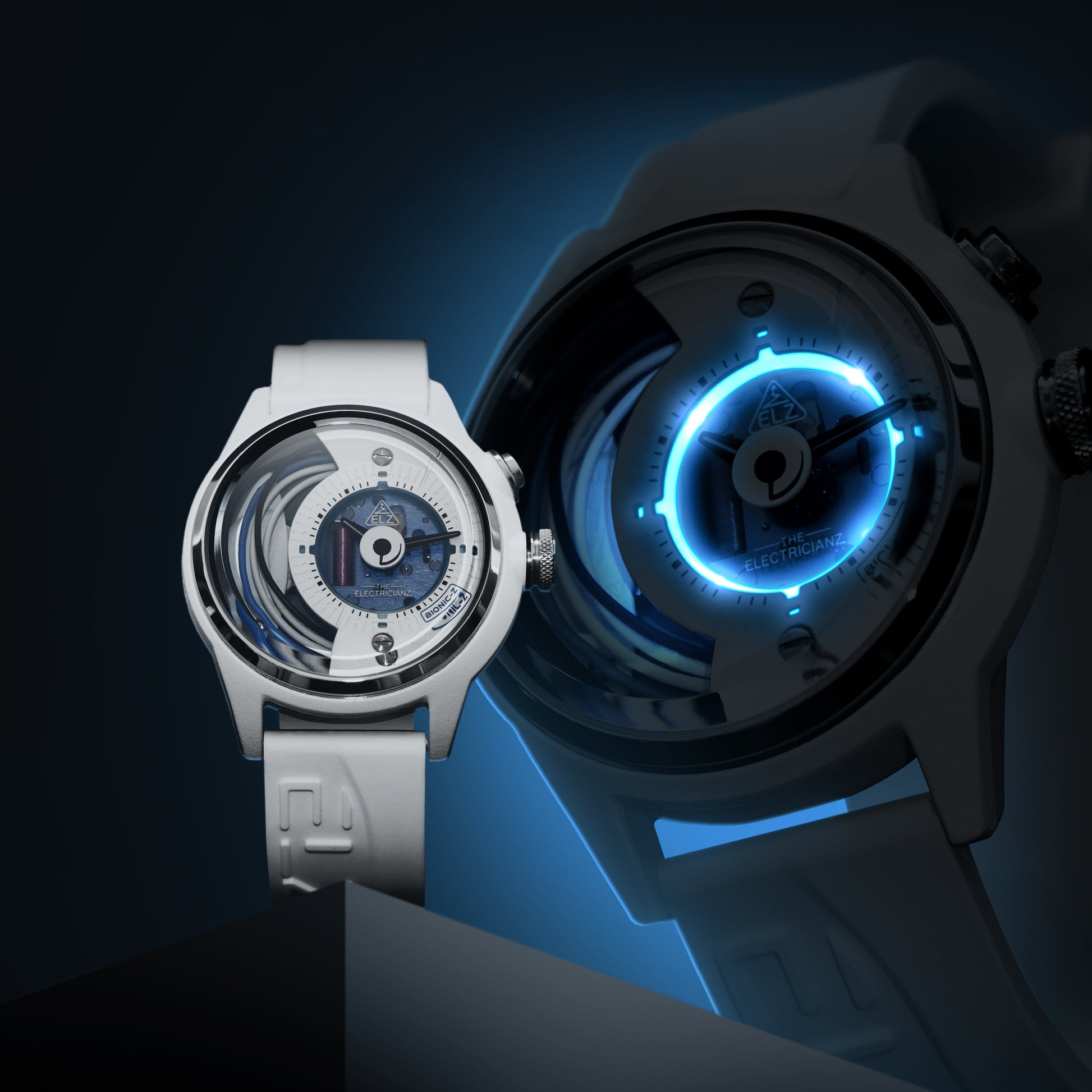 Gaze upon the multi-layer dial with its stunning semi-transparent blue plate and five vibrantly colored electrical cables, designed to captivate your senses