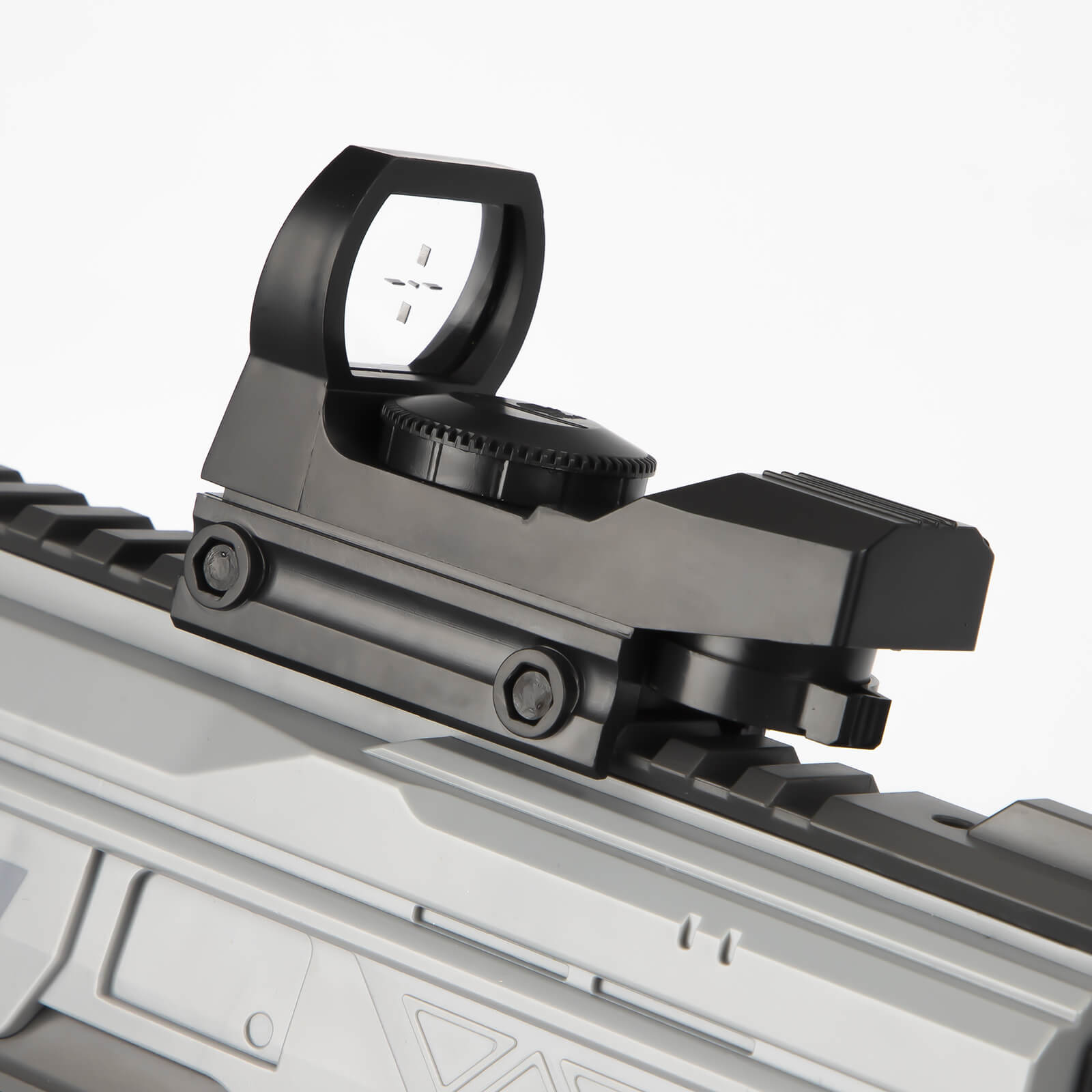 This gel ball launcher's shape design is inspired by the UZI MP7. The overall weight of this MP7 gel blaster is 1.5kg, and the gray cyberpunk shape is complemented by a plug-in magazine that exudes a sense of futuristic technology. It also has a very good shooting performance, with a shooting distance of 82 feet and a shooting frequency of more than 20 gel balls per second. Second, its fully automatic shooting mode is paired with a larger magazine capacity, there will be a longer use time after each replenishment.