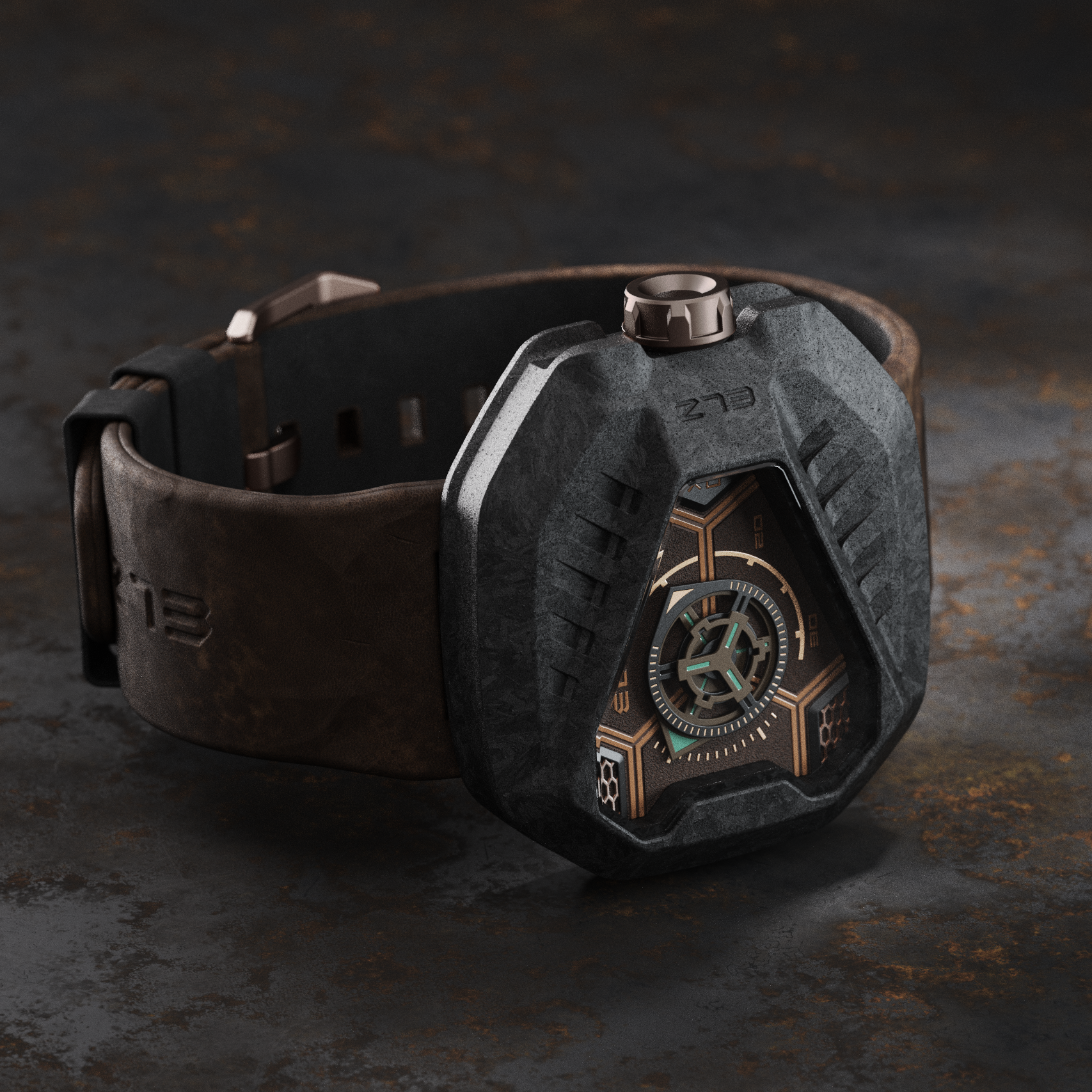 The XO Terra Edition is born from a World inhabited by Steampunk visionaries, blending intricate mechanical detailing with a futuristic high-tech twist. Its Carbon-injected case and multi-layered dial echo the raw beauty of planetary gearwork, a tribute to our mechanical roots while pushing forward into the next millennium.