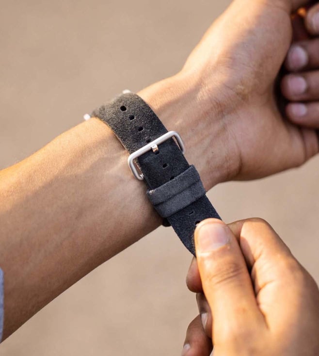 Featuring a hardened K1 mineral crystal with anti-reflective coating, the watch resists scratches and glare, keeping the dial clear and pristine. The soft, comfortable suede leather strap adds durability and style, making it suitable for everyday wear.